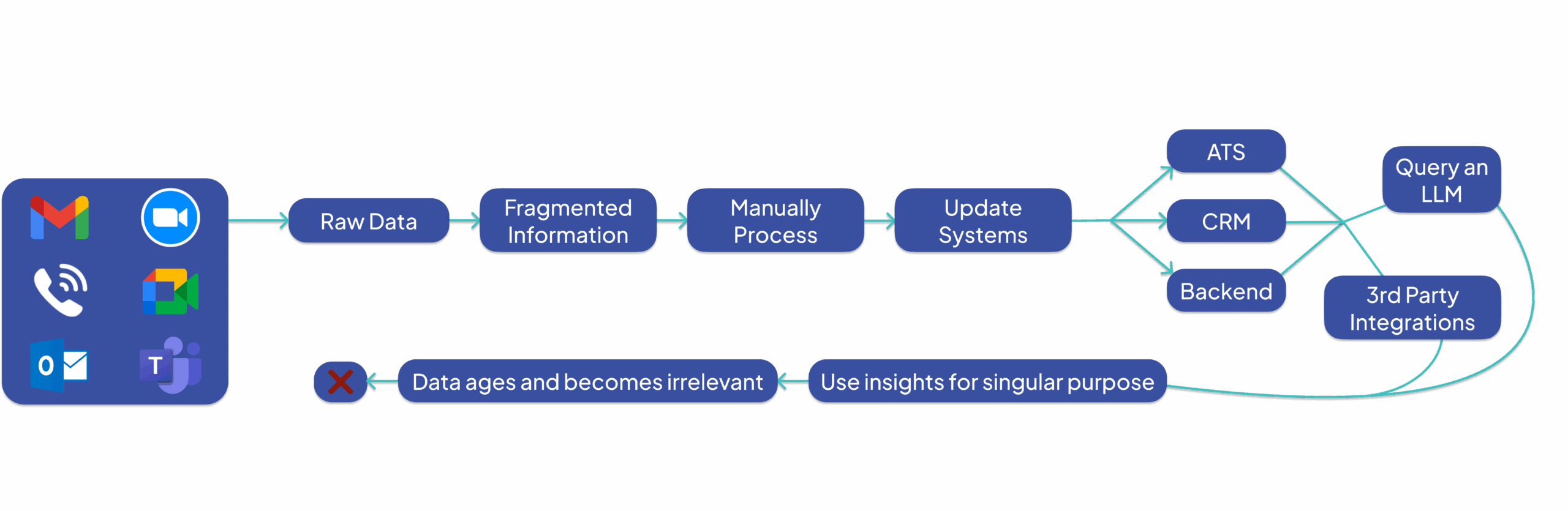 Your data should evolve even after you’ve stopped using it. Today you invest in a CRM or ATS that inherently decays and requires human hours to maintain and get any value from.