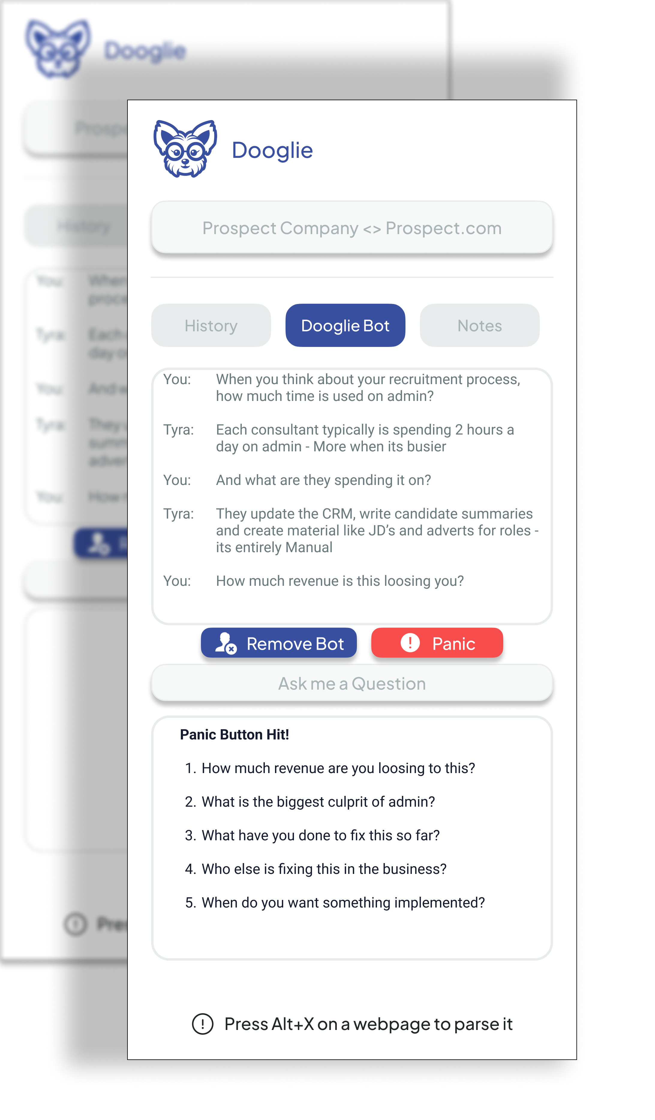 Dooglie Arc AI comes with a “Panic Button” this button is designed to help a drive conversations onward to outcomes.